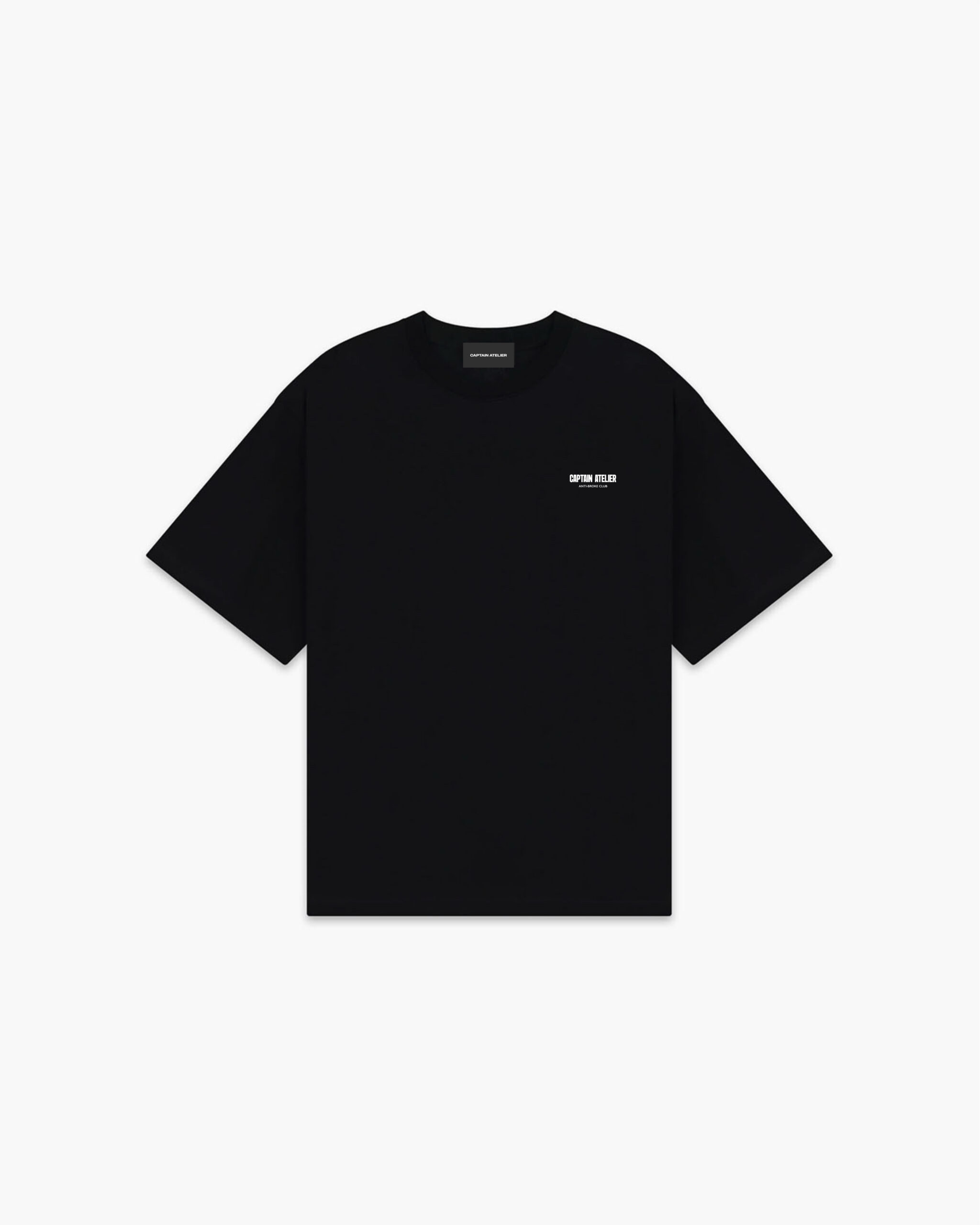 This Core Anti-Broke Tee unfolds in deep black, a visual testament to quiet strength and unwavering intent. Across the chest, Captain Atelier is featured in bold typography, balanced beneath by Anti-Broke Club a statement of conviction rendered with refined precision.