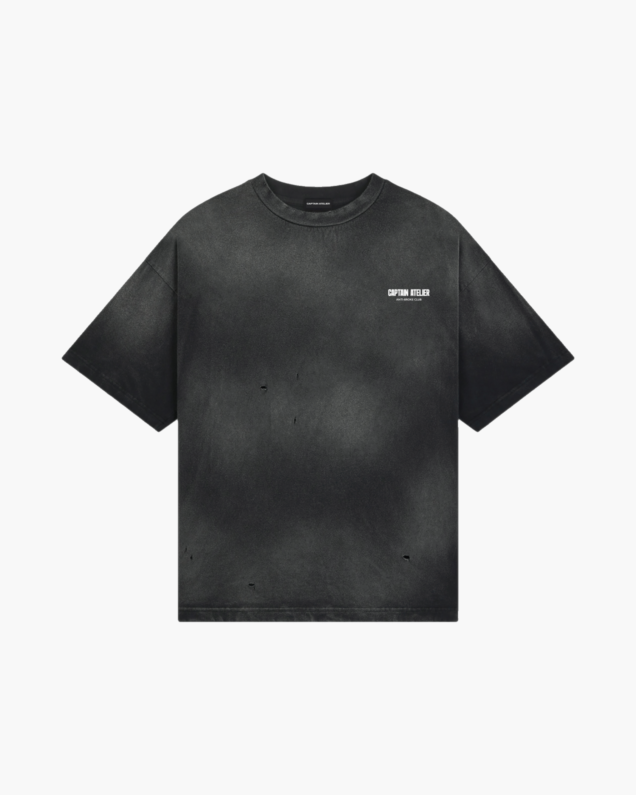 This Dyed Anti-Broke Tee redefines street refinement through poetic rebellion. Rendered in a washed charcoal hue, the tee showcases Captain Atelier in striking bold typography at the front, underscored by the Anti-Broke Club insignia as a declaration of drive and distinction.